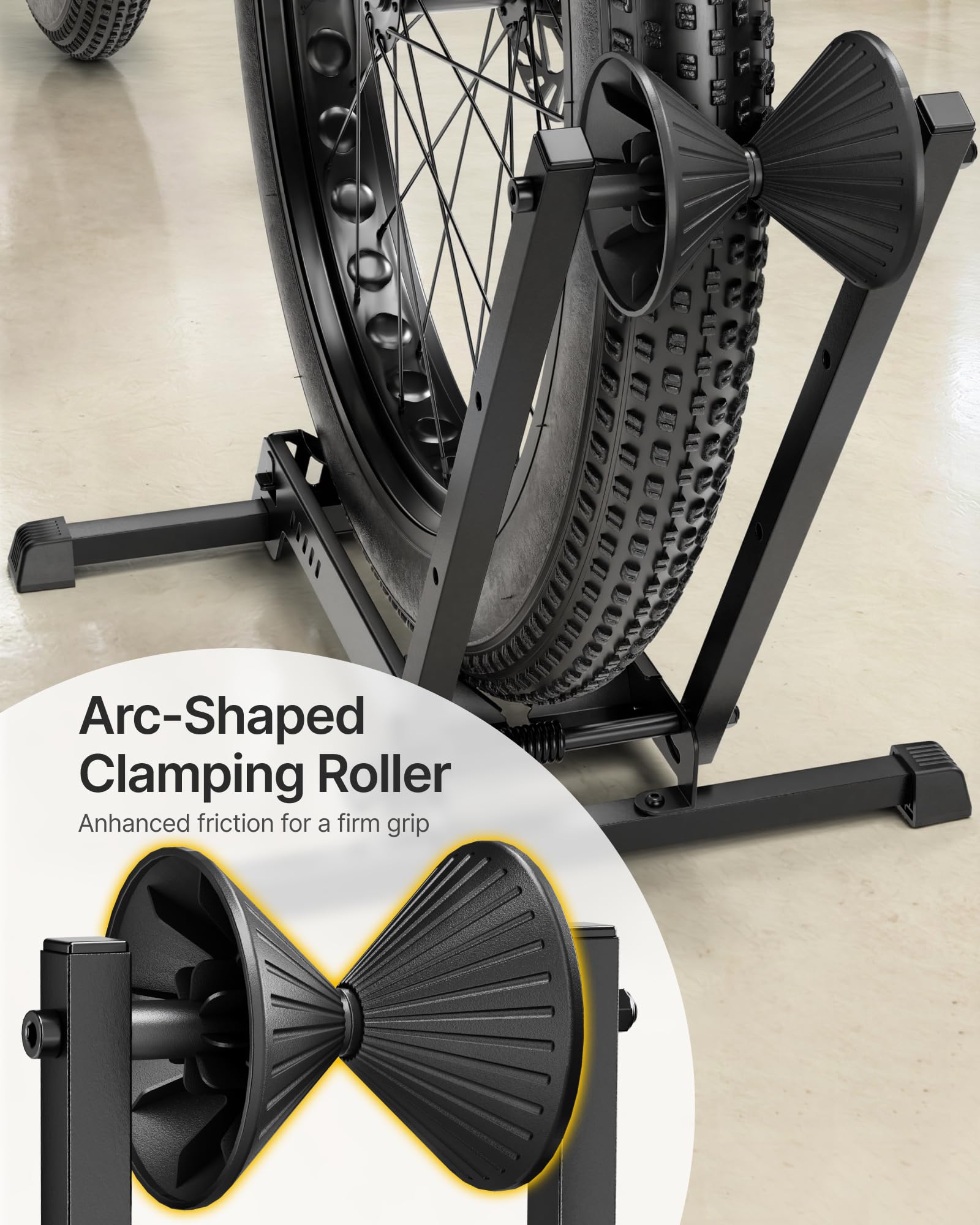 - ăFit 20"-26" Wheels & Max 4.5" Tire Widthă The monTEK bike stand offers unparalleled versatility, accommodating nearly all bicycle types including road, mountain, fat and kids' bikes. With a 3-level height adjustment feature, it ensures a perfect, secure fit for different bike sizes from 20 to 26-inch wheels and up to 4.5-inch wide tires, providing a truly universal solution for your diverse cycling needs.