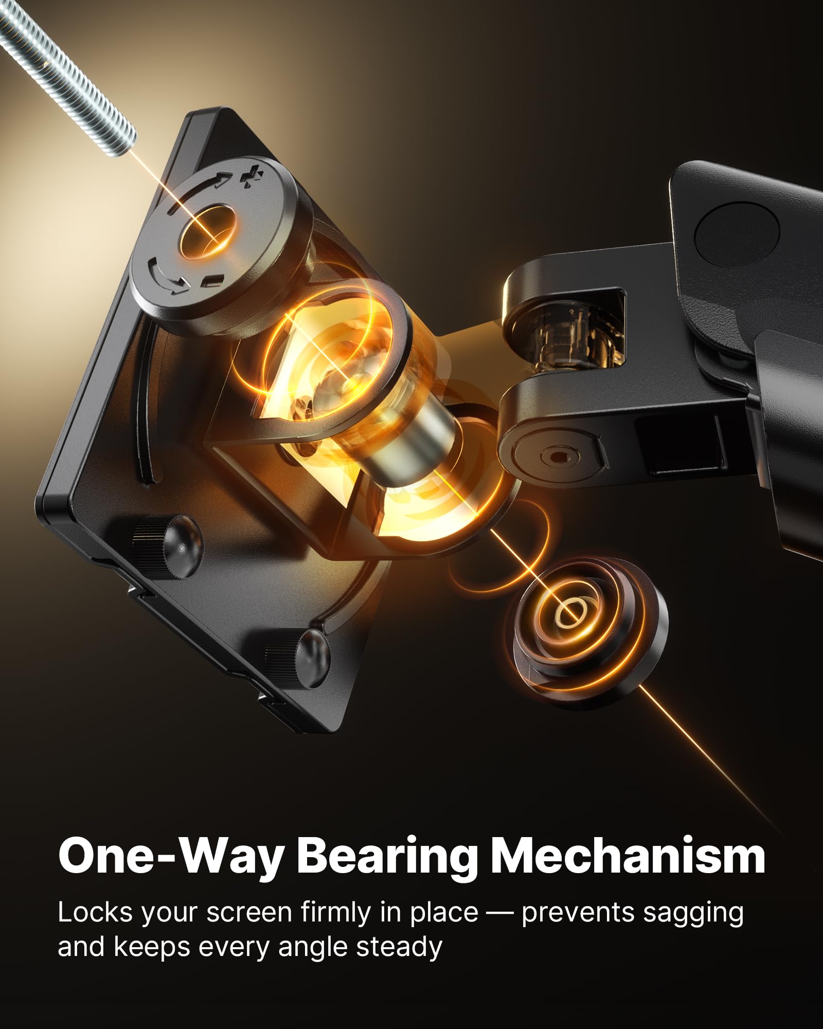 - 【Ultra-Wide Flexible Adjustment】Enjoy effortless ergonomic tuning with tilt from +60° to -50°, ±90° swivel, and ±90° rotation. The upgraded one-way bearing head structure enables smoother motion and precise control. Extend the arm up to 19.1” or lift it to a max height of 21.9” with ease.