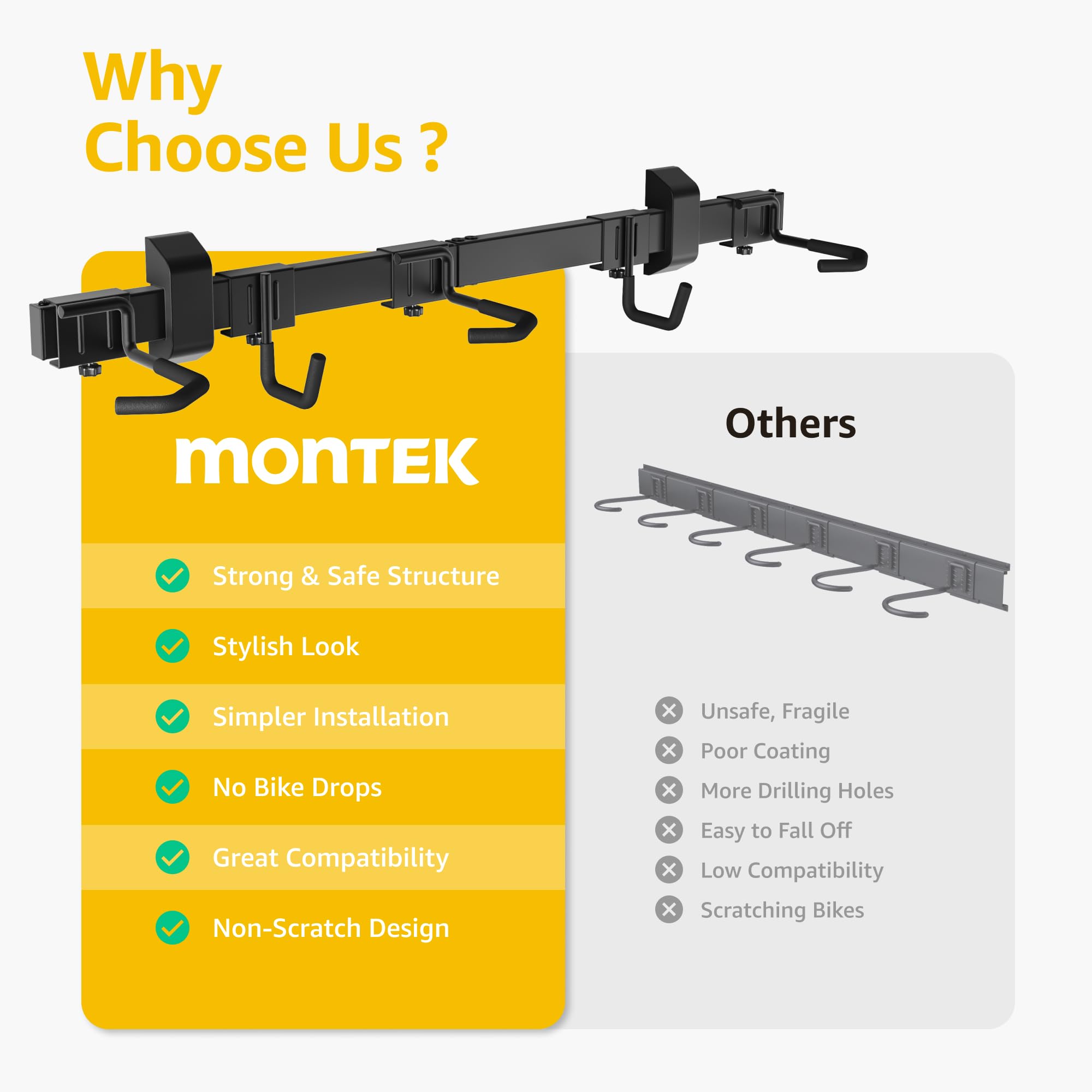 - ăSTURDY & DURABLE STRUCTIONăăUPGRADED J-HOOK DESIGNăăFITS MOST BIKESăăORGANIZED BIKE STORAGEăăEASY TO INSTALLăăPROFESSIONAL AFTER-SALE SERVICEă